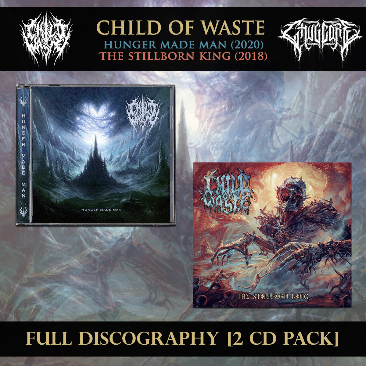 • This pack contains both of the current albums by Child of Waste which is their full discography up until this point. The 2 CDs are 'Hunger Made Man' (2020) and 'The Stillborn King' (2018).